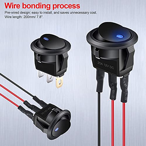 mxuteuk 8Pcs 12v Rocker switches,SPST Blue LED Illuminated Round Dot Rocker Toggle Switch On/Off 20A 12V DC Press Button Round Rocker Switch For Car Or Boat with Pre-soldered Wires KCD2-102N-BU-X