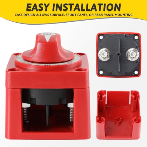About mounting: This battery switch can be safely mounted on gasoline powered boats, the chassis design allows for surface, front panel or rear panel mounting.The battery disconnect switch is euipped with mounting screws for easy installation which could save your time and money on extra accessories. The 12V switch shell is easily disassembled, and the space inside the shell is large to complete the wiring tasks.