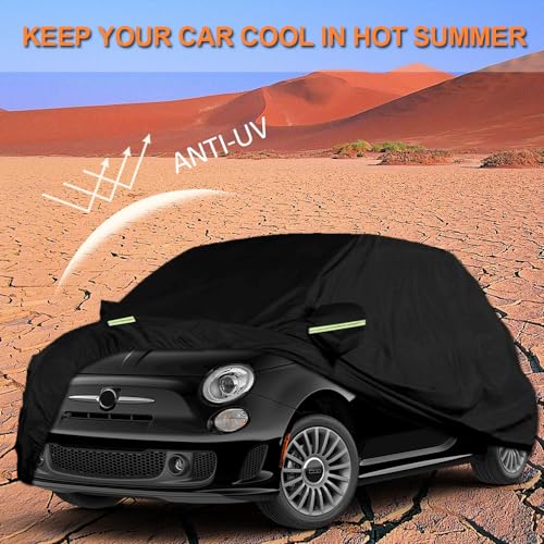 Waterproof Car Cover Compatible with Fiat 500 500C 500E Abarth 500 2007-2024, Outdoor Full Car Cover Sun Rain UV Dust Protection for All Seasons